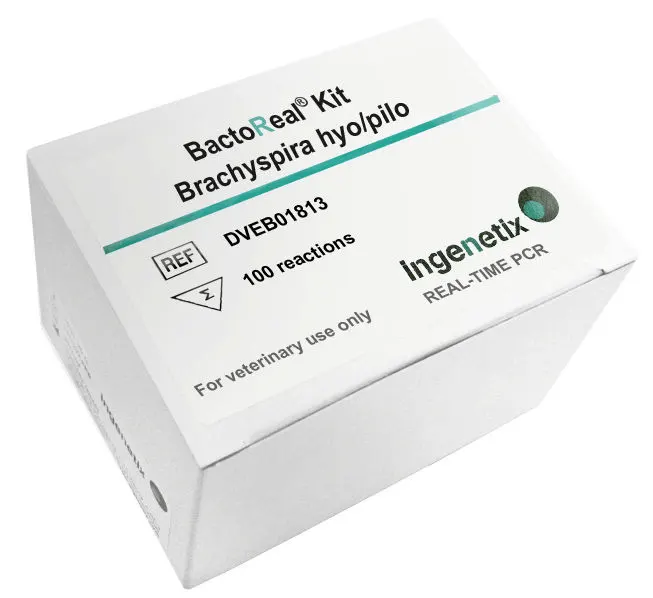 Combined detection of the nox gene of Brachyspira hyodysenteriae and Brachyspira pilosicoli. No differentiation between speciesBackground: Brachyspira are anaerobic intestinal spirochaetes. Brachyspira hyodysenteriae (previously called Serpulina hyodysenteriae or Treponema hyodysenteriae) is the causative agent of swine dysentery. Swine dysentery is a disease characterized by mucohaemorrhagic diarrhoea with lesions confined to the large intestine of pigs. Its incubation time is 10-14 days. The faecal excretion of B. hyodysenteriae starts 2 days after infection. Brachyspira pilosicoli (previously called Serpulina pilosicoli) colonizes the large intestine of various species, including humans. It is the etiologic agent of human and animal intestinal spirochetosis and rarely implicated as a cause of bacteremia. For example, it is the causative agent of porcine colonic spirochaetosis (PCS). Brachyspira are anaerobic bacteria but are aerotolerant due, at least in part, to high NADH oxidase activity. Description: BactoReal® Kit Brachyspira hyo/pilo uses real-time PCR for the detection of the NADH oxidase (nox) gene of B. hyodysenteriae and B. pilosicoli. Our carefully designed primers and probe ensure highest sensitivity and specificity. The kit consists of an assay mix for the detection of the pathogen as well as a positive control and an internal positive control (IPC). To minimize PCR cross-contamination,the reaction mix included contains dUTP and uracil-N glycosylase (UNG) to minimize PCR cross-contamination Product Features: - Amplification and detection: NADH nox gene of B. hyodysenteriae and B. pilosicoli - Real-time PCR with rapid hot-start Taq DNA polymerase - ROX™ dye as passive reference - Internal Positive Control System to exclude false-negative results - Optimized to handle PCR inhibitors - PCR- platforms: runs on all established standard real-time PCR- platforms - Harmonized thermal profiles to run RNA and DNA samples simultaneously - Kits format: 100 reactions or 50 reactions - Channel Target: FAM; Channel IPC: VIC/HEX