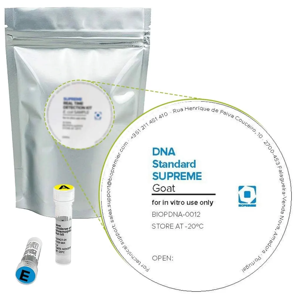 DNA Standard SUPREME Goat is designed to perform a comparative quantitation analysis of Goat DNA in food and feedstuff samples by Real Time PCR. For reliable quantitative results, it is recommended to apply the DNA Standard SUPREME Goat in combination with the SUPREME Real Time Detection Kit Goat (BIOPSFS-0012 or BIOPSFS-sp0012)