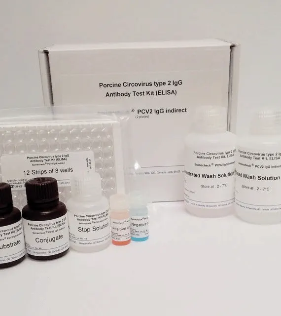 Swinecheck® PCV2 IgG indirect is an immunoenzymatic assay for the detection of IgG antibodies to porcine circovirus type 2 (PCV2) in porcine serum.