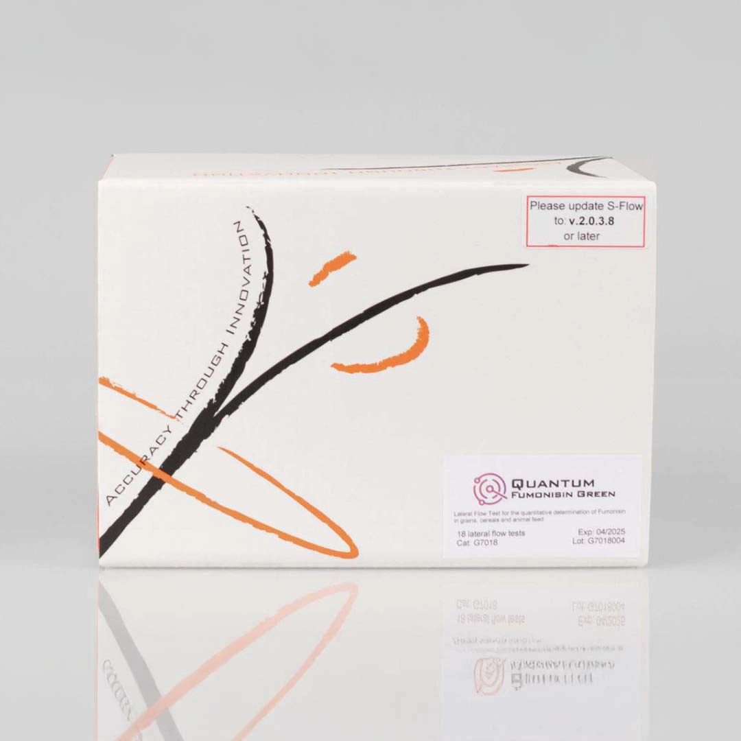 Quantum Fumonisin Green is a Lateral Flow device for the quantitative detection of Fumonisin (FUMO) in the range of 0.50–30 parts-per-million (ppm) and is based on the competitive format immunoassay principle
