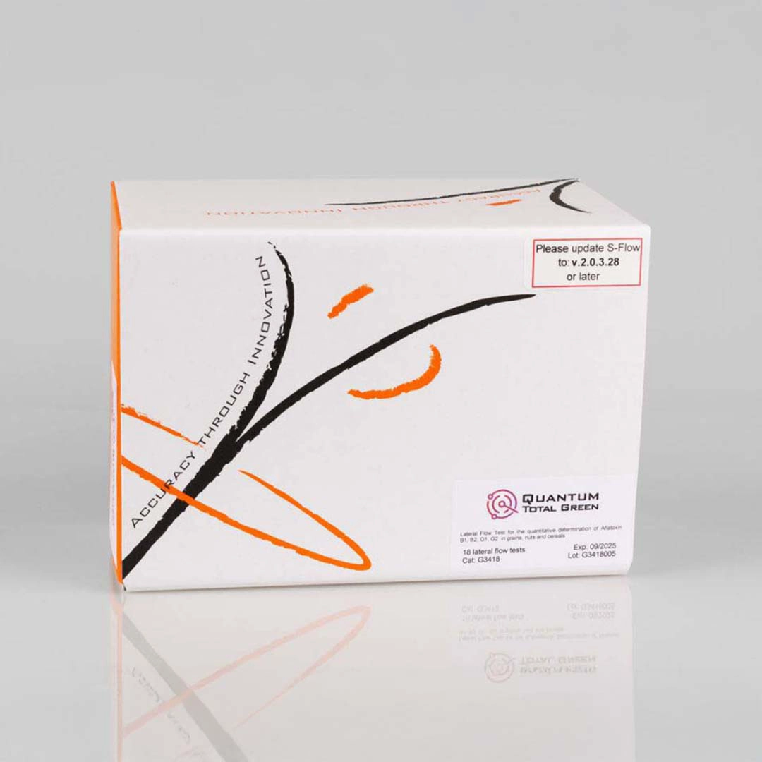Quantum Total Green is an innovative Lateral Flow test, for the quantitative determination of Aflatoxin B1, B2, G1 and G2 in grains, nuts and cereals. Due to its QUANTUM scan technology, samples free of Aflatoxins can be detected in 2 minutes. The total time of reaction takes 4 minutes to complete.