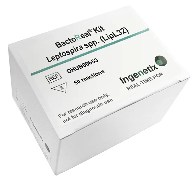Descrição: BactoReal® Kit Leptospira spp. (LipL32) usa PCR em tempo real para a deteção do gene LipL32 de Leptospira spp patogénica. Nossos primers e sonda cuidadosamente projetados garantem a mais alta sensibilidade e especificidade. O kit consiste em uma mistura de ensaio para a deteção do patógeno, bem como um controlo positivo e um controlo positivo interno (IPC). Para minimizar a contaminação cruzada por PCR, a mistura de reação incluída contém dUTP e uracil-N glicosilase (UNG).
